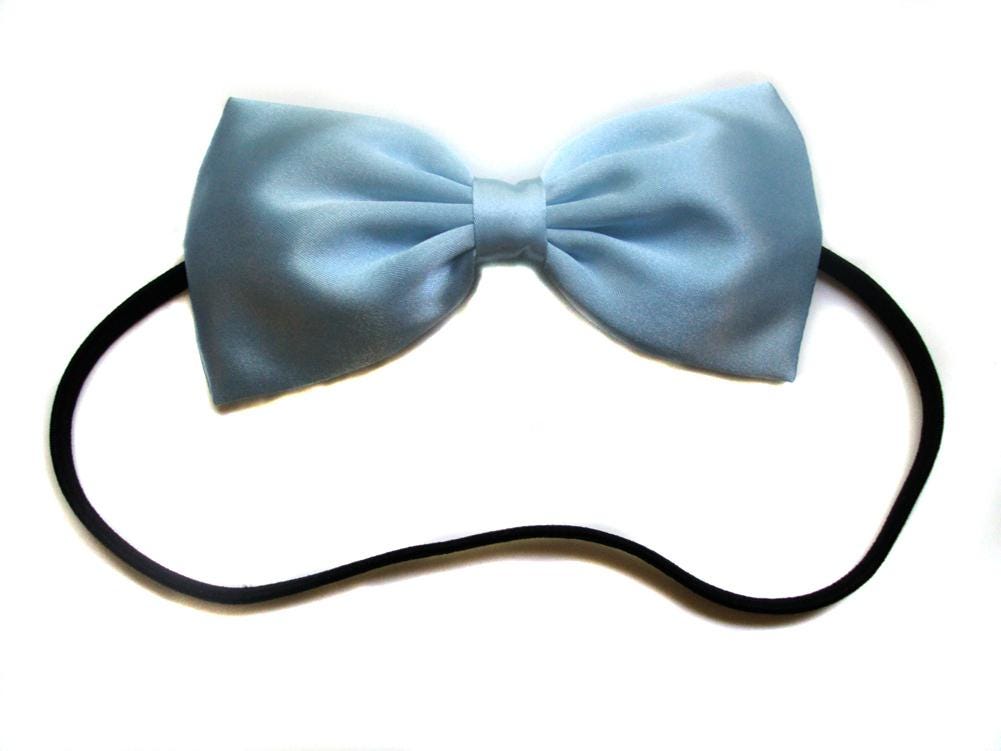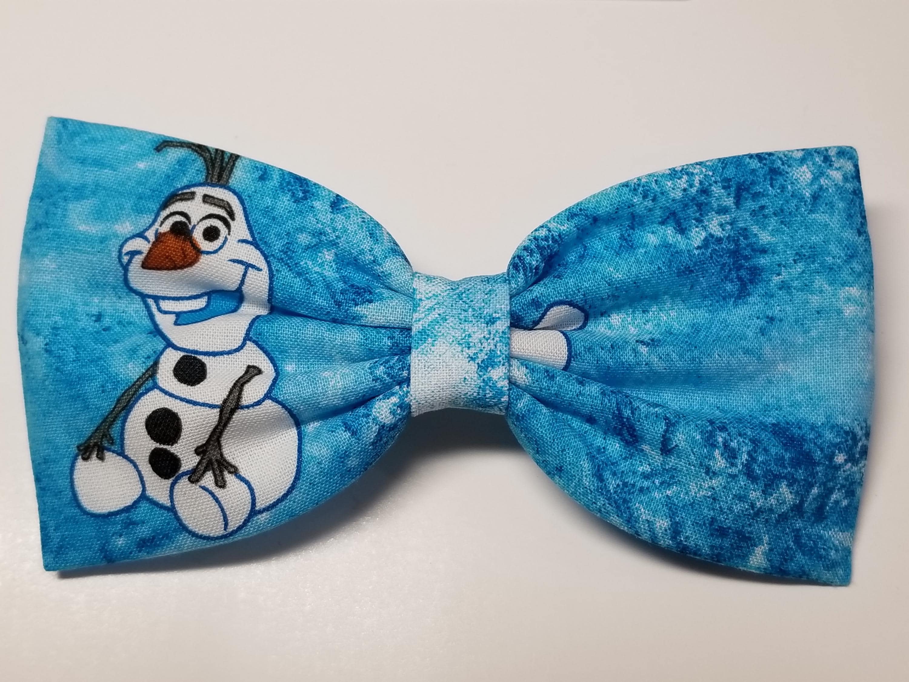 This listing is for ONE hair bow--Choose from: Olaf print, Pale Blue Satin, Satin Bow with Ribbon Tails, or Light Blue Glitter. Each bow can be made with a barrette, alligator clip, or elastic black headband attachment.