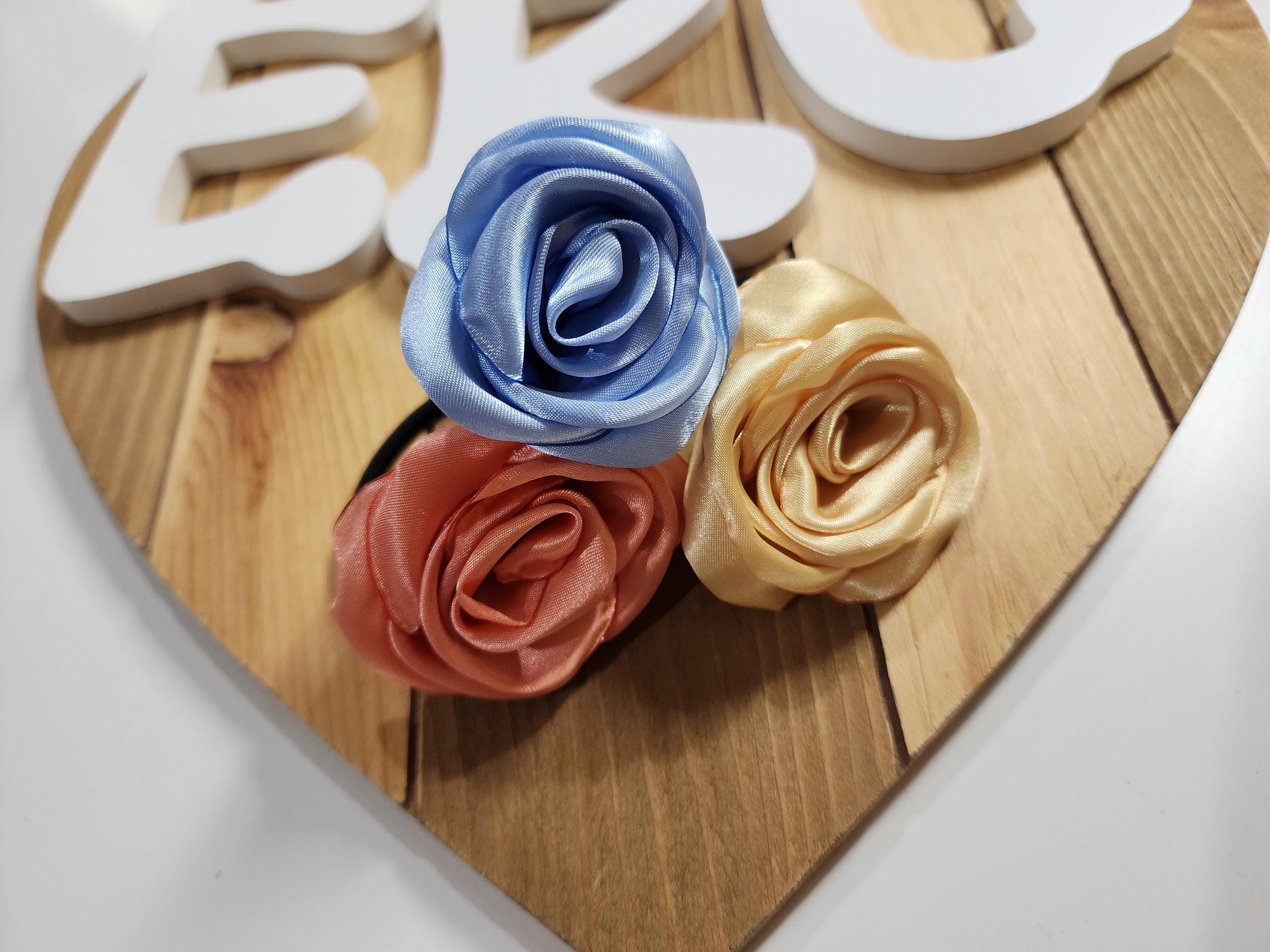 Rose Ponytail Holder- Handmade Satin Roses Ponytail Holders- Many Colors To Choose- Fast Shipping